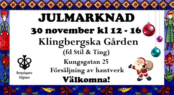 Julmarknad med hantverk från Bergslagen Stickat * Virkat * Järn * Slipat * Målat * Sytt * Bakat * Ylle * Ull * Föda * Bakat * Knåpat * Blommor...