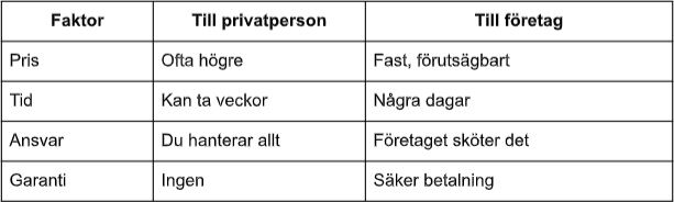 Ditt val beror på vad som är viktigast för dig. Vill du ha högsta möjliga pris och har tid att vänta? Välj privat försäljning. Behöver du snabba pengar utan krångel? Ett återförsäljare är bättre.