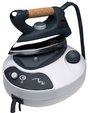 Ångstation i vit plast med mörkgrå detaljer, 1900 Watt, 1 liters tank och 3,5 bars tryck. Ergonomiskt skräddarjärn med kontinuerlig ångfunktion.