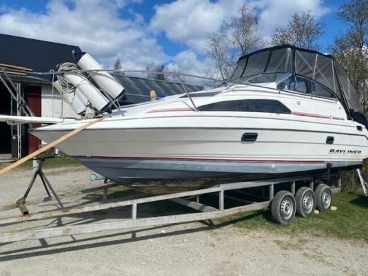 En fin båt med det mesta man behöver för ett bekvämt liv på sjön. Kök, spis, toalett, varmvattenberedare, jordfelsbrytare, mm. 5.0 Mercruiser V8, sluten glukolkylning. Det finns lite upputsning om man vill, men det är bara att sjösätta som den är nu. Vi har köpt en något mindre båt för lite bad och avkoppling på Råsvalen. Säljes med eller utan vagn, därav priset.