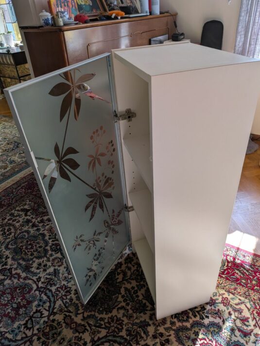 IKEA hylla Billy med glasdörr lämplig för porslin, glas eller vinflaskor.