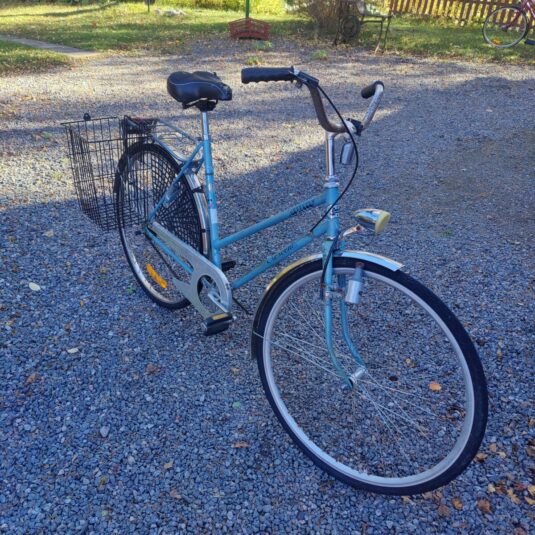 Säljer mina gamla cyklar pga flytt. Här har du en gammal goding som behöver en del kärlek. Hon har aldrig krånglat men fåglarna har tyvärr hackat sönder sadeln och en del rost finns men det tillför en härlig vintage charm. Dåligt med luft i däcken men det är nog för hon stått still ett längre tag. Lås med nyckel i bakhjul finns.