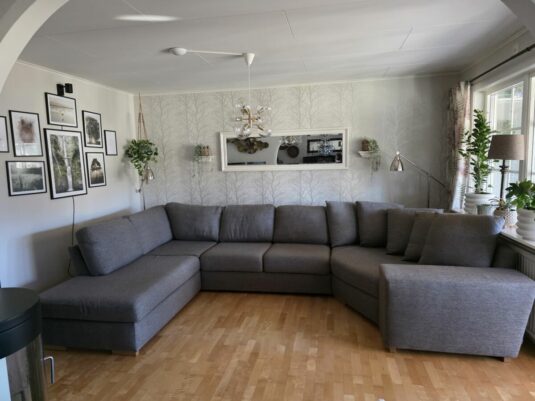 Friday Divan soffa + cosy hörna köpt från MIO. Stor fin soffa i grå/brun färg
