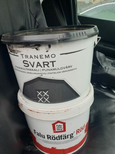 Röd 10l burk oöppnad, har förvarats frrostfritt, likaså den svarta 10l, men öppnad.