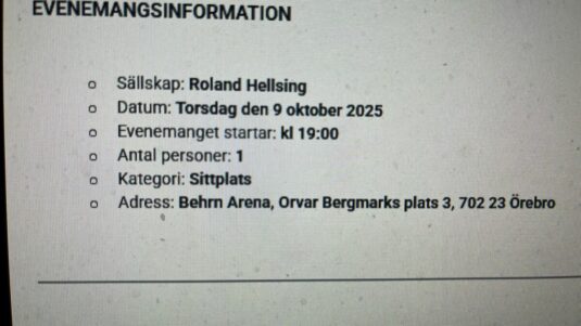 Hockeybiljett Örebro – Timrå torsdag 9 okt
