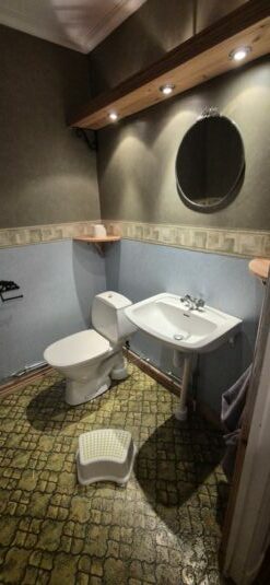 Hyllplan med konsoler, infällda downlights inklusive driver. På bilden ovanför spegeln. Ca 163 cm lång, 21 cm djup och höjden inkl konsoler är knappt 25 cm.