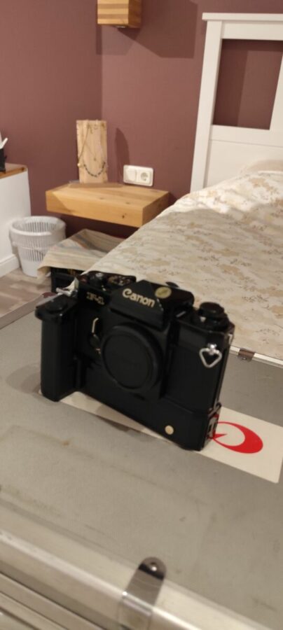 Cannon camera F1. Canon speedlite 360 TL. zoom FD 35-105 1:3,5. Extender FD 2x-B. Canon FD 135mm 1:2,8. CanonFD50mm 1:1,4. CanonFD200mm 1:2,8. Canon FD 85mm 1:1,8. CanonFD 24mm 1:2,8.