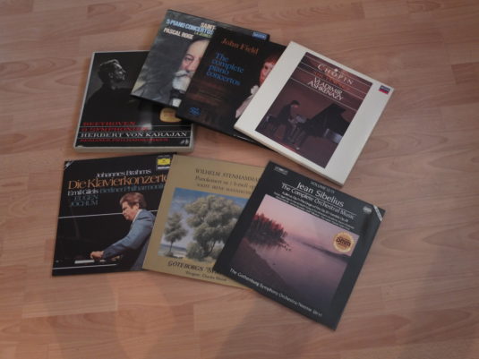 Pianokonserter, solopiano, violinkonserter, symfonier mm. Av Beethoven, Brahms, Chopin, Field, Liszt, Mozart, Norman, Rachmaninov, Sarasate, Sibelius, Saint Saens mfl.