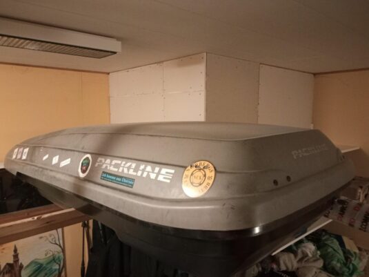 Bra skick. L.225 B.80 H.35. Bygelfästen till takräck.