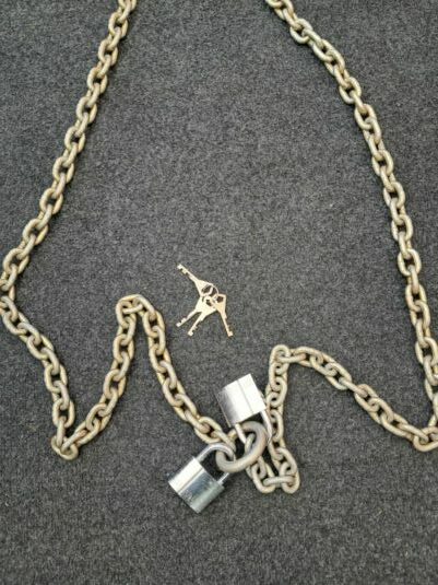 Kedja 250cm. Länk25×35×7mm. Lås 231 Abloy bygel 8mm. 2st 4 nycklar