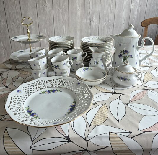 Fyrklövern servis med violer använd endast en gång finns i Storå hämtas i Storå