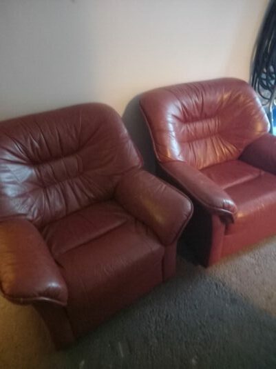 2st skinn fåtöljer ibra skick säljes för 400kr