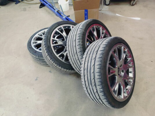 4st sommardäck på fälg passar Volvo S60, S80, V70 bultmönster 5×108 nav 75.1 Storlek 225/40-18, mönster 4-6mm