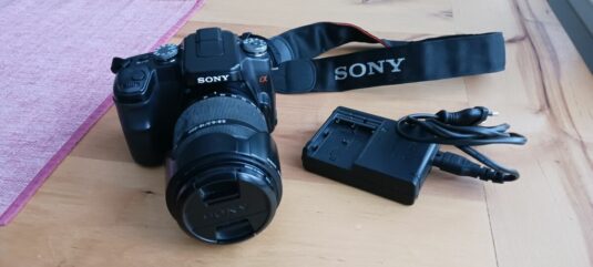 En Camera Sony Alpha A100 10.2MP Digital SLR med en 18-200 zoomlens. I mycket bra skick. Vid snabb affär kan priset diskuteras.