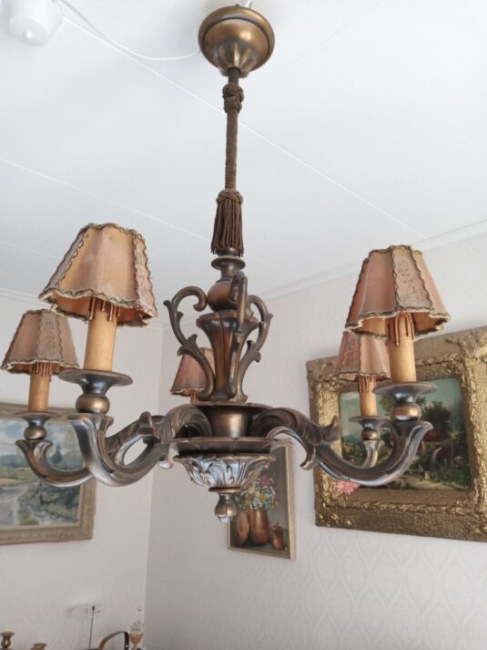 Taklampa 40-tals trä med originalskärmar