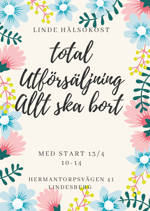 Utförsäljning av varor från Linde Hälsokost!