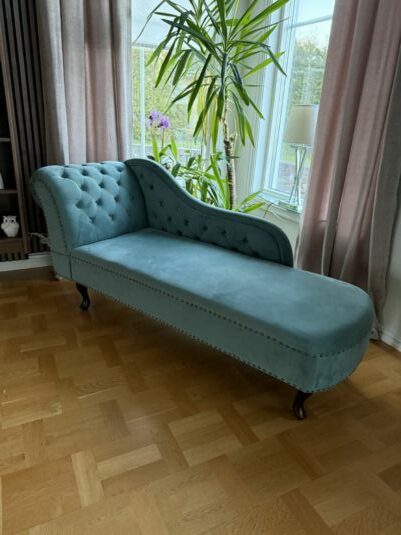 Vänstervänd schäslong NIMES Sammet Blågrön