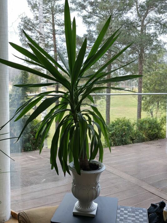 Yuccapalm med vit fin kruka.