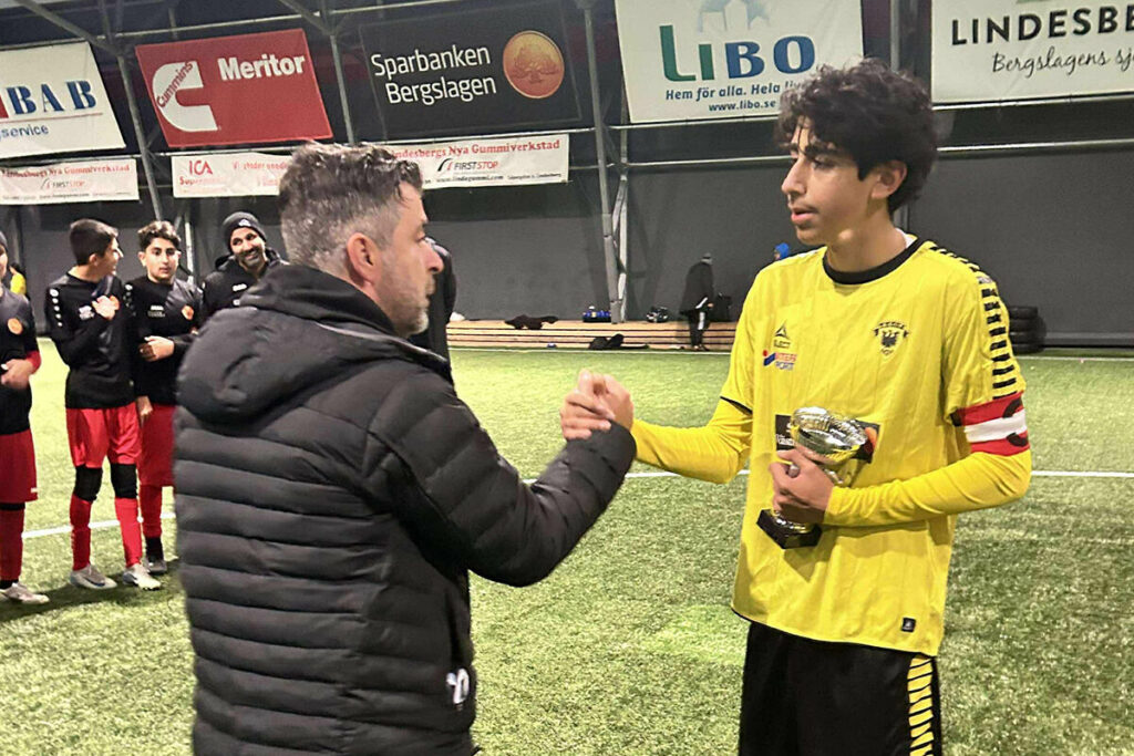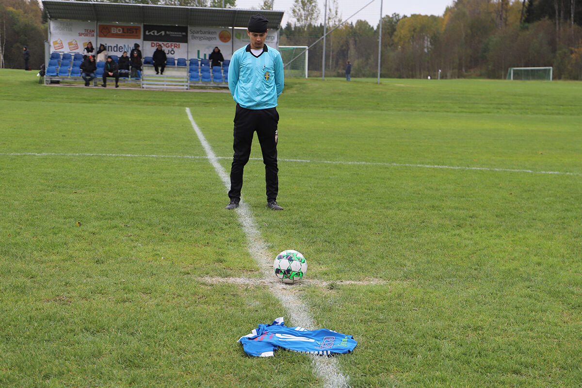 Vid sidlinjen står Benjamins pappa, Namir, tårögd och tittar medan lagen sparkar igång ute på planen. Det här är första året som han närvarar vid sonens minnescup, något som har krävt mycket styrka från honom.
