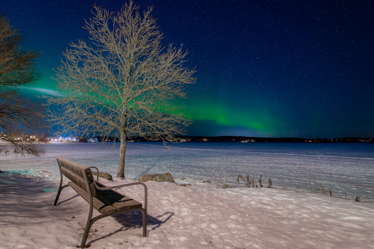 Jag kunde inte hålla mig! Nästan varje gång det har varit norrsken har jag jobbat och inte haft möjligheten att ge mig ut, men den här helgen var jag ledig. Vid cirka klockan 00.30 gick jag ut och promenerade längs Nora strandpromenad. Det var underbart tyst.