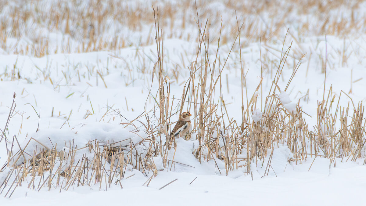 Jag åkte runt till lämpliga biotoper, men utan någon större lycka. Sedan kom dagen då snön anlände. Jag begav mig ut igen och som vanligt besöktes alla de lämpliga biotoperna. När jag kom till en plats där jag hade sett många gulsparvar under de senaste dagarna, så fick jag se en annan fågel flyga upp från marken, som var väldigt ljus undertill. Det var absolut inte en gulsparv. Det var nämligen den fågelart som jag aldrig lyckats se eller fotografera tidigare. Den vackra snösparven. Jag blev alldeles till mig och hann få några bilder på de fyra snösparvarna, som jag hann med att se bland alla gulsparvar som också flög upp från marken i samma stund. Äntligen lyckades jag se och fotografera denna fågelart, men jag hann naturligtvis också med att fotografera den vackra vintern ute i naturen innan tövädret slog till.