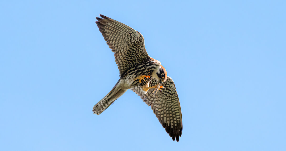 Lärkfalk äter trollslända i luften. Foto: Sami Rahkonen