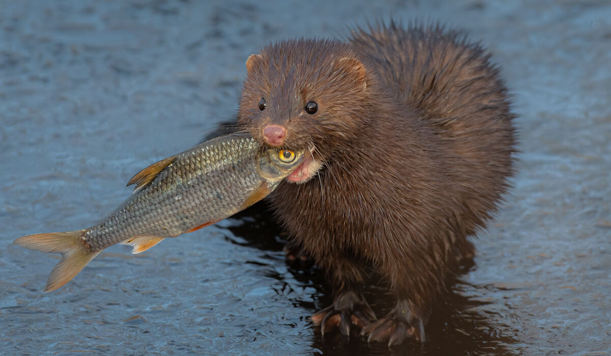 Mink med mört i munnen. Foto: Sami Rahkonen