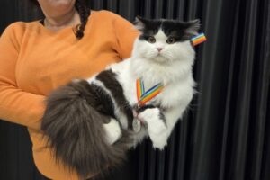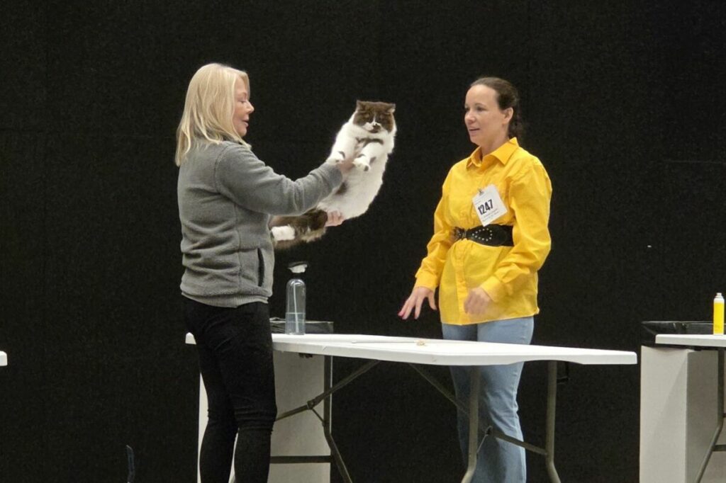 Mitt bland alla kattälskare fanns det två kattägare som representerade Lindesberg Kommun. En av de två utställarna var Matilda Bjunge från Frövi som vid båda dagarna ställde ut sina två katter av rasen brittisk långhår. Katterna Caspian och Cassie är båda åtta och en halv månad unga och gjorde under helgen sin sjunde respektive åttonde utställning. Tillsammans hade de båda syskonen blivit nominerade till utställningsfinal, eller panel som det heter i kattutställningsvärlden, vid fyra tillfällen.