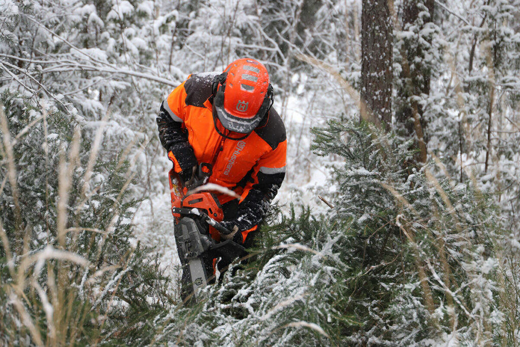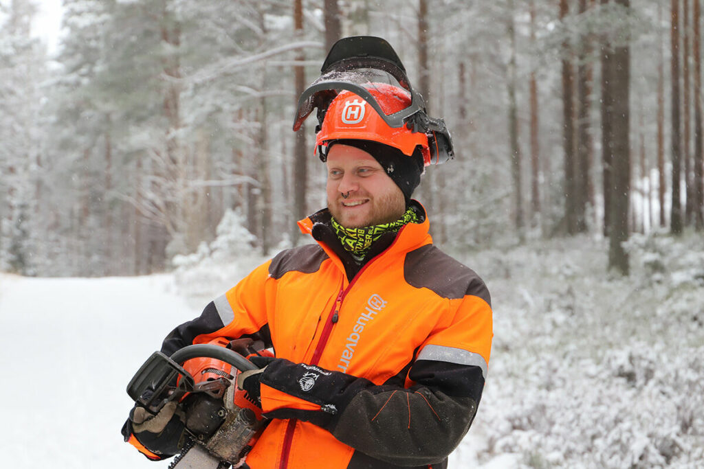 Albin Myhrén sågar. Foto: Camilla Lagerman