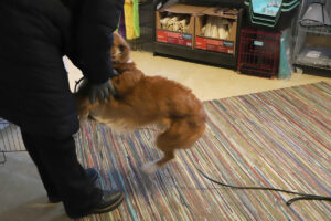 När LindeNytt hälsar på i lokalen på Koppgatan i Lindesberg ska hunden Bella precis gå hem för dagen. Överlycklig och sprallig över att se sin matte tar hon ett extra glädjevarv i butiken innan matte får en stor kram.
