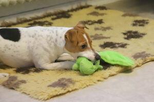 – Vi upptäckte att det fanns en 50 kvadratmeter stor källare som inte användes, så efter klartecken från hyresvärden beställde vi golvmatta till det som kommer bli lekrum. För är det 25-30 grader kallt ute kan de gå ut och kissa men inte så mycket mer, men där kan man verkligen leka och aktivera hundarna, förklarar Hanna.