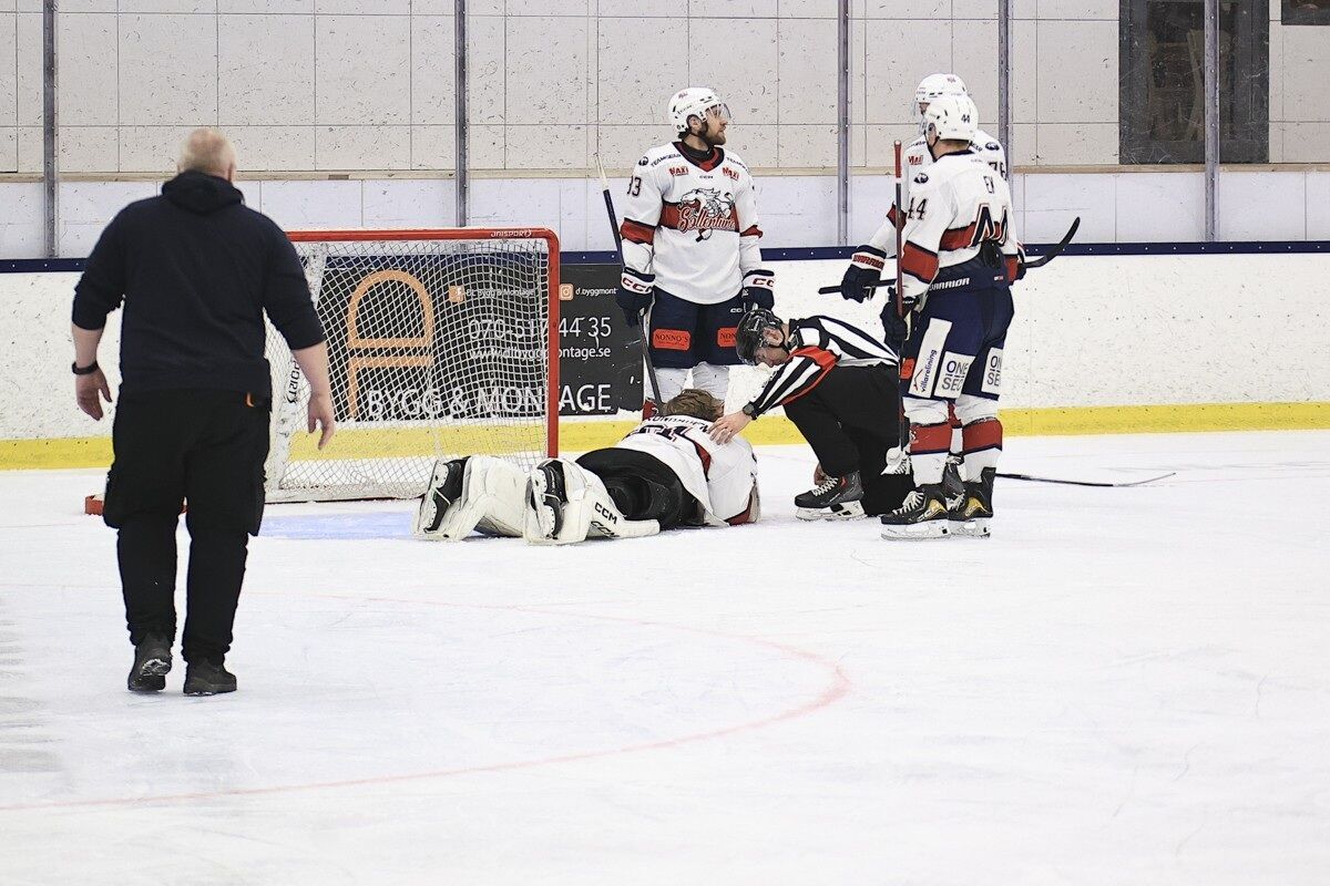 Målvakten tog sig till spelarbänken på egna ben men lämnade över resterande målvaktsjobb för kvällen till Sollentunas andremålvakt.