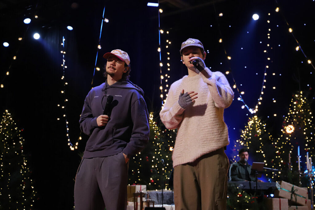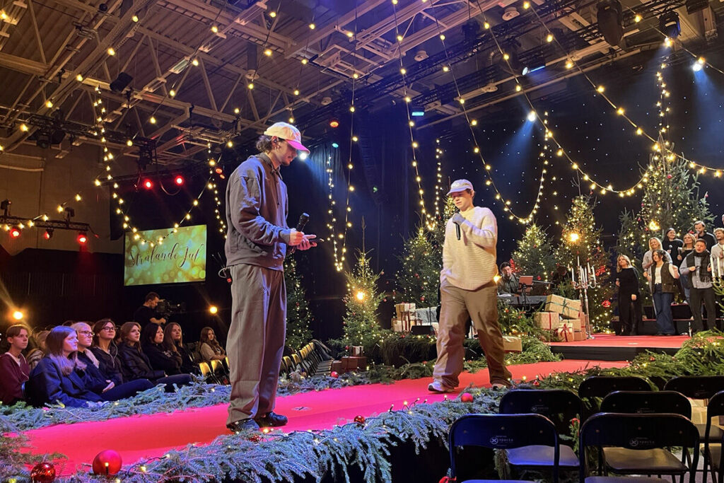 De norska musikaliska tvillingarna Marcus och Martinus anlände till Lindesberg under måndagskvällen, och på tisdagsförmiddagen stod de på Strålande Juls stämningsfullt pyntade scen för att genomföra sina sista repetitioner inför eftermiddagens konserter och inspelningar.