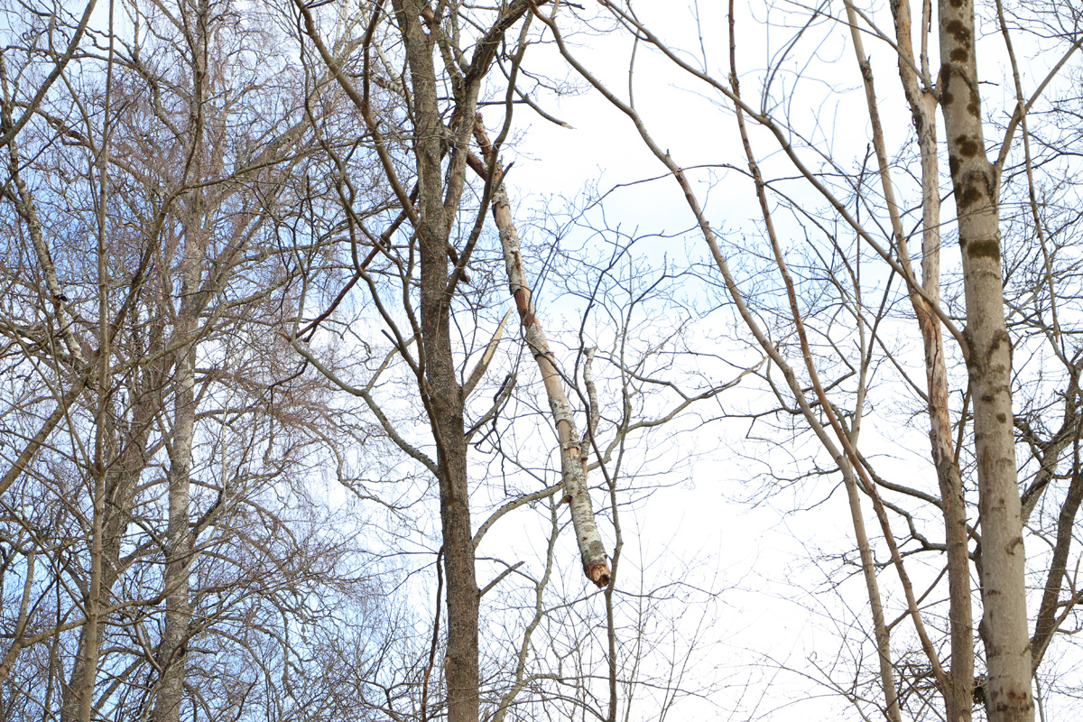 Man förstår att det kan vara farligt när man ser den ”fälla” som finns vid en av stigarna på sydöstra sidan. En grov björkgren har slitits av från en björk som fälldes och hänger nu i ett träd intill precis över den stig som går där. När faller den?