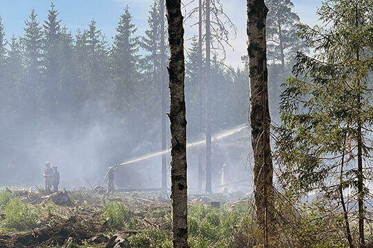 Räddningstjänsten befinner sig just nu (kl. 19.00) i ett område strax utanför Fellingsbro med anledning av en mindre skogsbrand i en ungskog. Räddningstjänsten, tillsammans med frivilliga från allmänheten, har nu lyckats ringa in branden som uppskattas vara cirka 20 x 50 meter stor. Räddningstjänsten beräknar att släckningsarbetet pågår 1-2 timmar ytterligare.