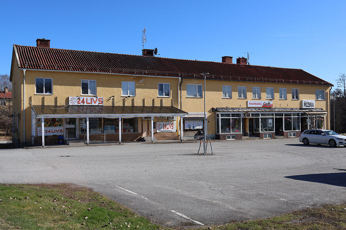 Gåvoboden och Café Buffé ligger mellan 24 Livs och Vedevåg Pizzeria. Foto: Jennie Einarsson