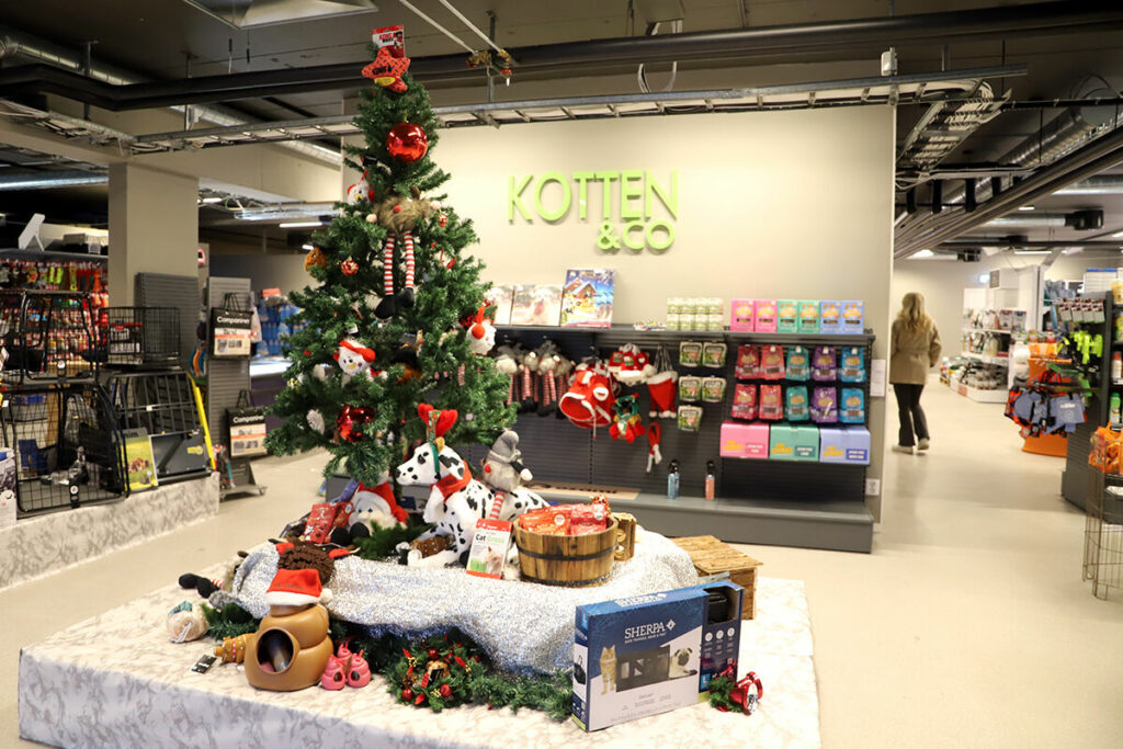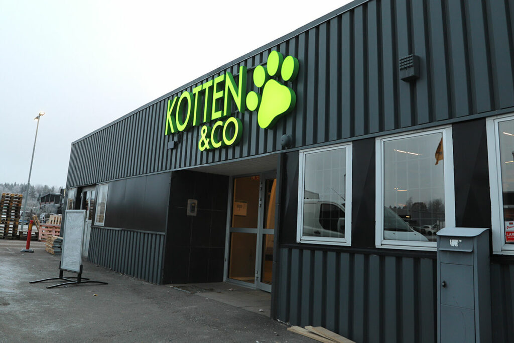 Efter att Elon bytte lokal på Charlottenlunds Handelsområde tog Charlotte beslutet att flytta in Kotten & Co i deras gamla lokal – och under tisdagen hölls premiäröppningen. Den nya 800 kvadratmeter stora butiksytan rymmer både butik och trimavdelning, samt en stor träningslokal på övervåningen. Även om allt inte är helt färdigställt ännu är det mesta i butiksdelen på plats. Nya, höga foderhyllor har ställts upp längs väggarna och de något lägre hyllorna från den tidigare inredningen har placerats i mitten av butiken för att skapa bättre översikt och ett luftigt intryck.