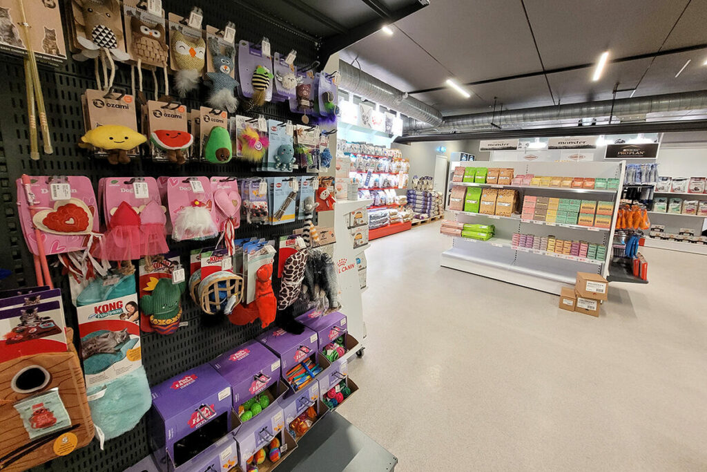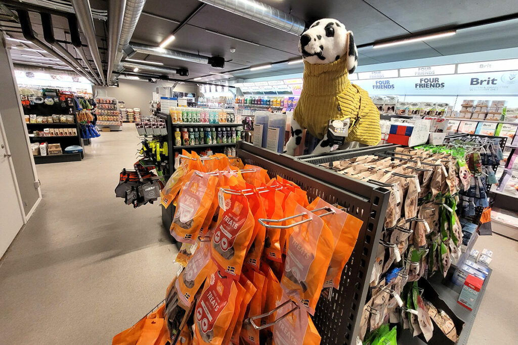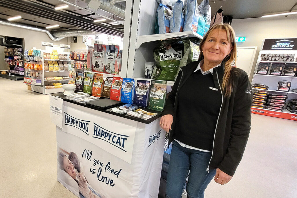 – Från början var det svårt att föreställa sig hur det skulle bli, men när vi började ställa upp de nya foderhyllorna insåg jag att det här skulle bli riktigt bra. Det ger ett mycket fräschare intryck, och eftersom vi har placerat fodret längs väggarna känns butiken så enormt mycket större. Vi har ändrat lite i sortimentet, bland annat utökat smådjursavdelningen, berättar Charlotte.