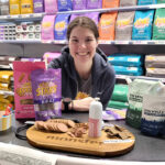 Amanda från True Pets bjöd på belöningskorvar och kakor för hundar. Foto: Jennie Einarsson