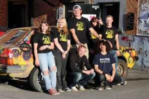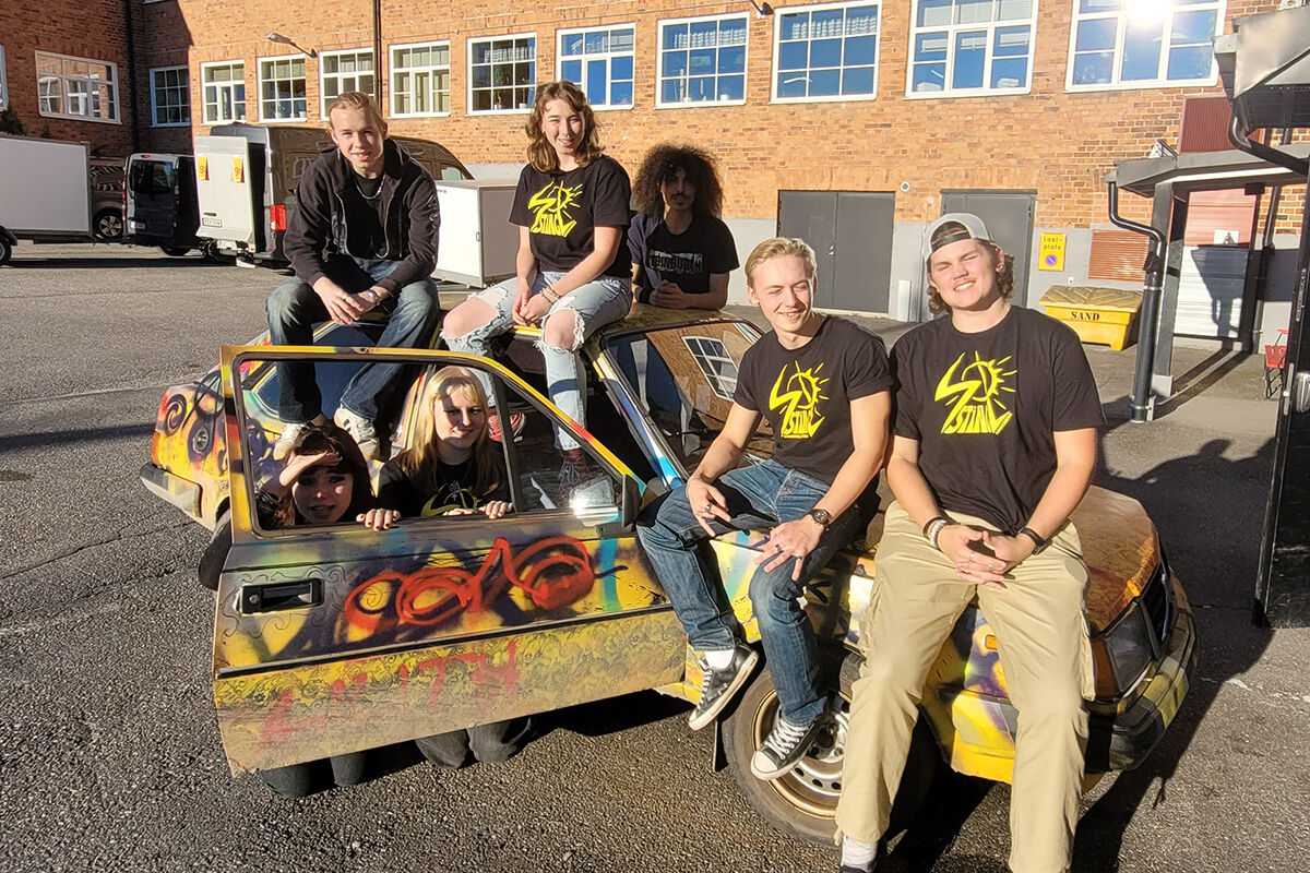 Stående från vänster till höger: Iris Netzel Bjunge, Felicia Falk, Daniel Forsberg, Engla Mellin, och Leo Larsson. Sittande: Malte Nilsson och Jakob Alimuhamedov. Foto: Jennie Einarsson