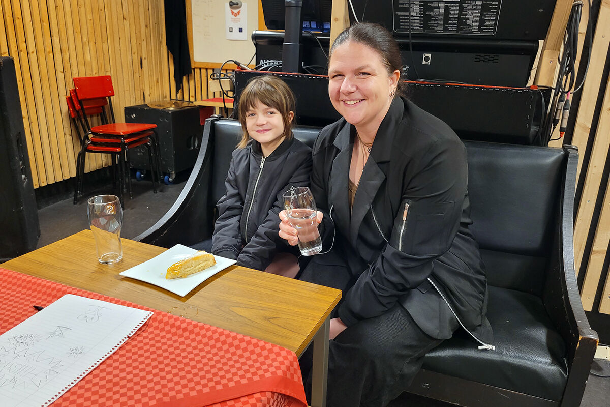 – Jag tycker det är fint här och mysigt… och lite rockigt, skrattar Lovis innan hon tar en stor tugga av kvällens Silviakaka som står serverad.