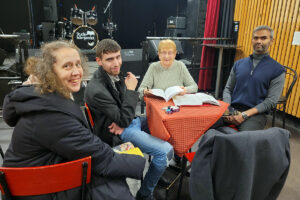 – Svenska är ett lite svårt språk att lära sig. Det är svårt med grammatiken, speciellt när det kommer till substantiv och genus – när ska man använda en eller ett? Annars tycker jag att det är lite som engelska och tyska blandat. Nu har jag bara varit här i ett år men försöker göra framsteg varje dag. Det är första gången jag är här på språkcaféet – jag älskar miljön och den stöttande energin här, och Magita har ett fantastiskt tålamod med oss, säger Savio med ett leende.