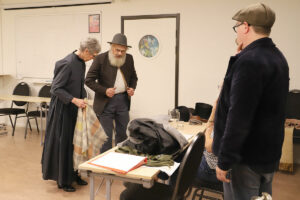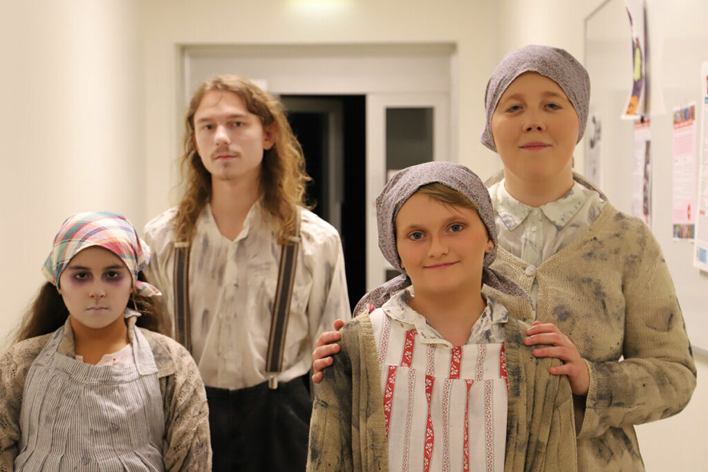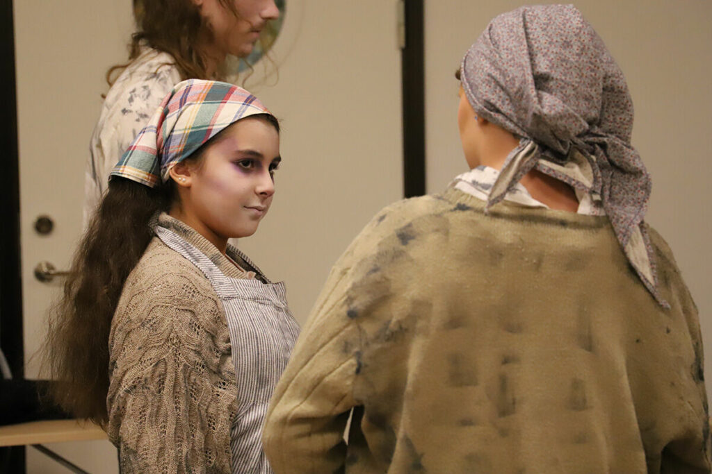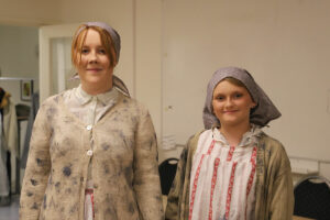 – Det mesta är kläder som är bevarade från den aktuella tidsepoken, så det är ett stort detektivarbete att spåra upp och låna där det behövs. Vi lånar från Löas teatersektion och skolan, vi har ett stort gäng förråd, sedan köper vi till på loppisar, syr om och syr nytt, förklarar kostymansvarige Kajsa Forsberg.