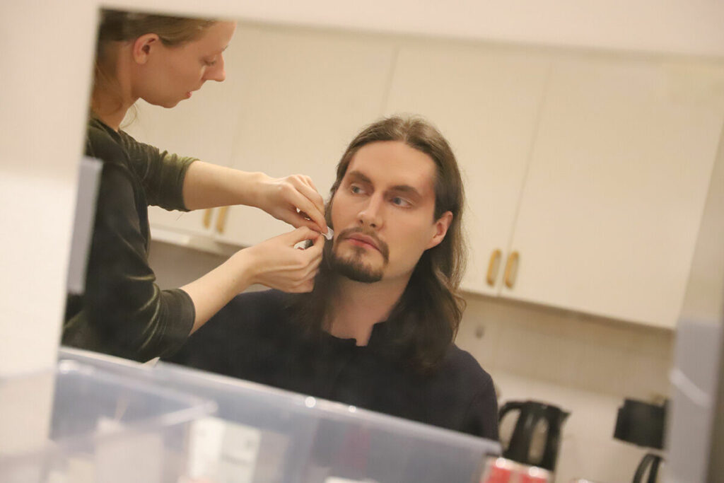 I sminket arbetas det för fullt, allt ska vara perfekt inför premiären. Foto: Camilla Lagerman