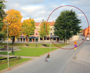 Den stora alm som står i parkens nordöstra hörn – utanför Restaurang Palmas – kommer att raderas från centrumkartan då utrymmet behövs för de tillfälliga hållplatserna som skall vara klara till torsdag i nästa vecka.