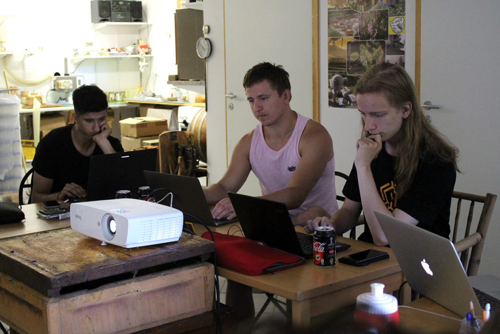 I det lilla rummet sitter en grupp ungdomar som sommarjobbar med att granska bilder av bin och markera regioner drabbade av parasiten Varroa Destructor, som appen sedan ska kunna hitta med hjälp av mobilkameran.